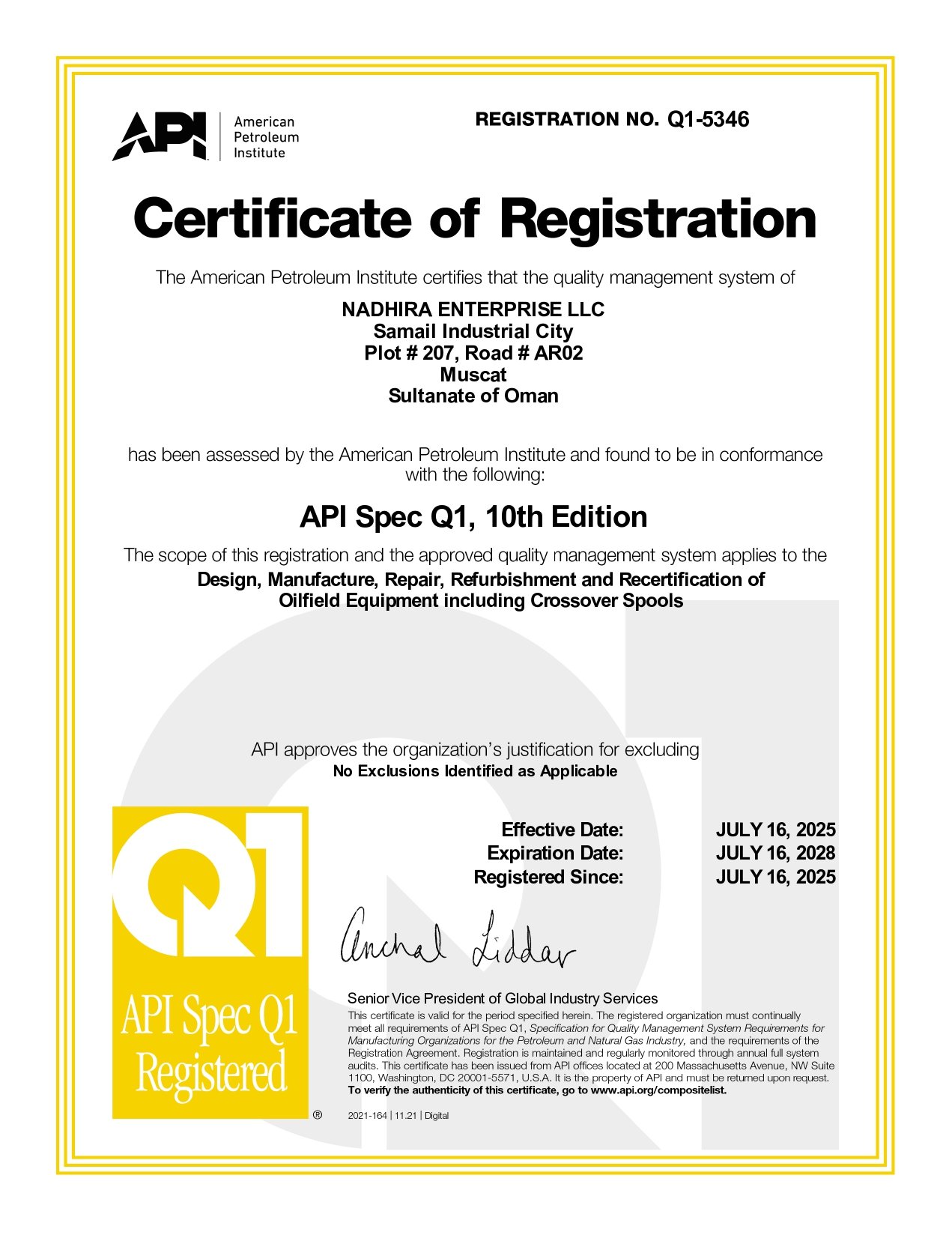 Nadhira DSC Certificate 21 FSG CSC 00710 Duqm