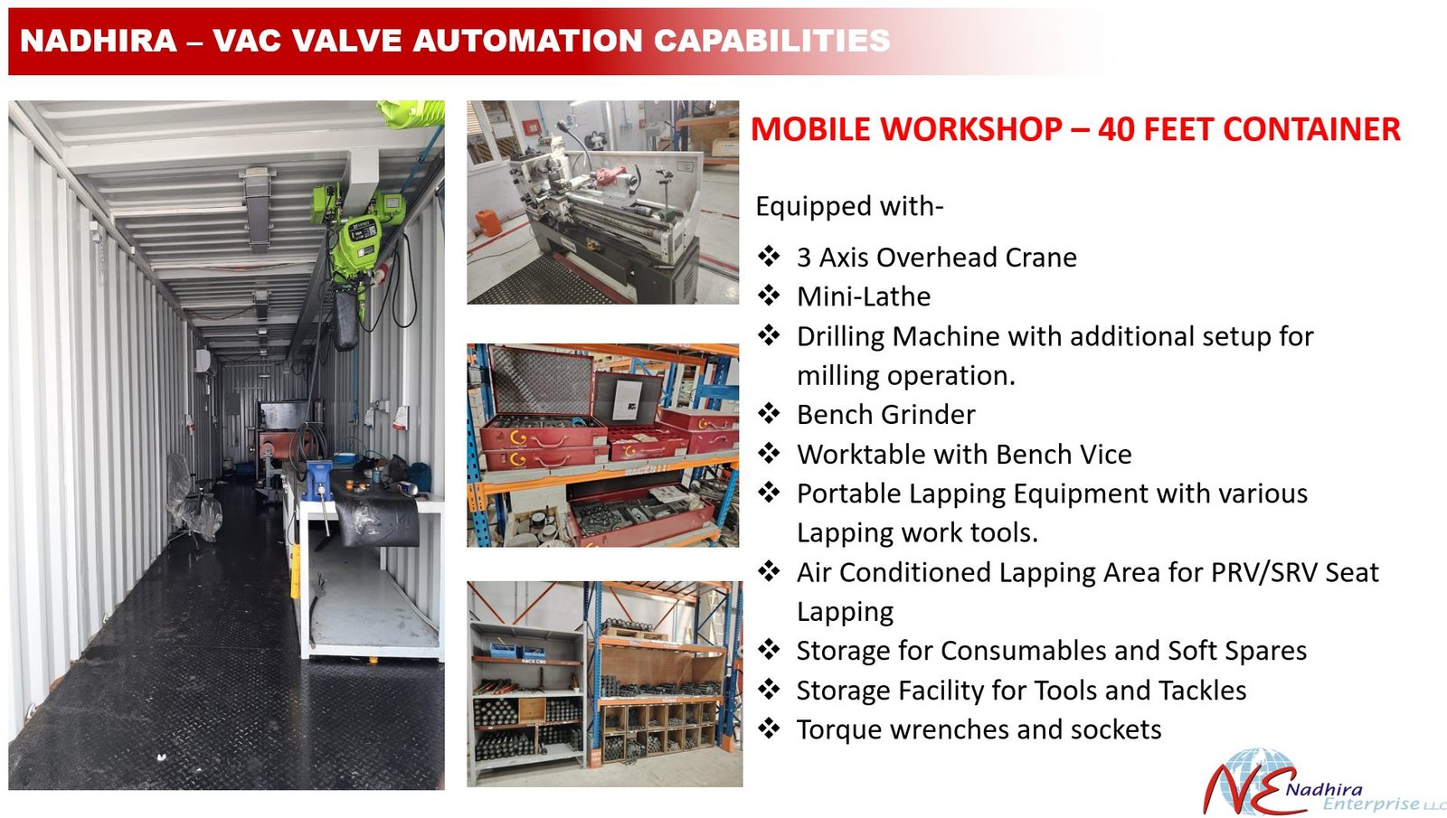 Nadhira Enterprise LLC has established Valve Automation Centre & Repair Facility (VAC) in Sultanate of Oman at Sumail Industrial Estate since 2019, adapting and developing ICV (In Country Value) concept to support Nation’s growth.